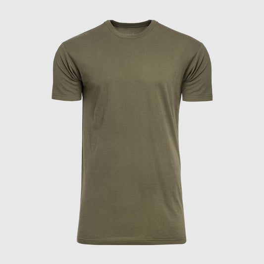 Military Green Tall Round Hem Crew Neck T-Shirt