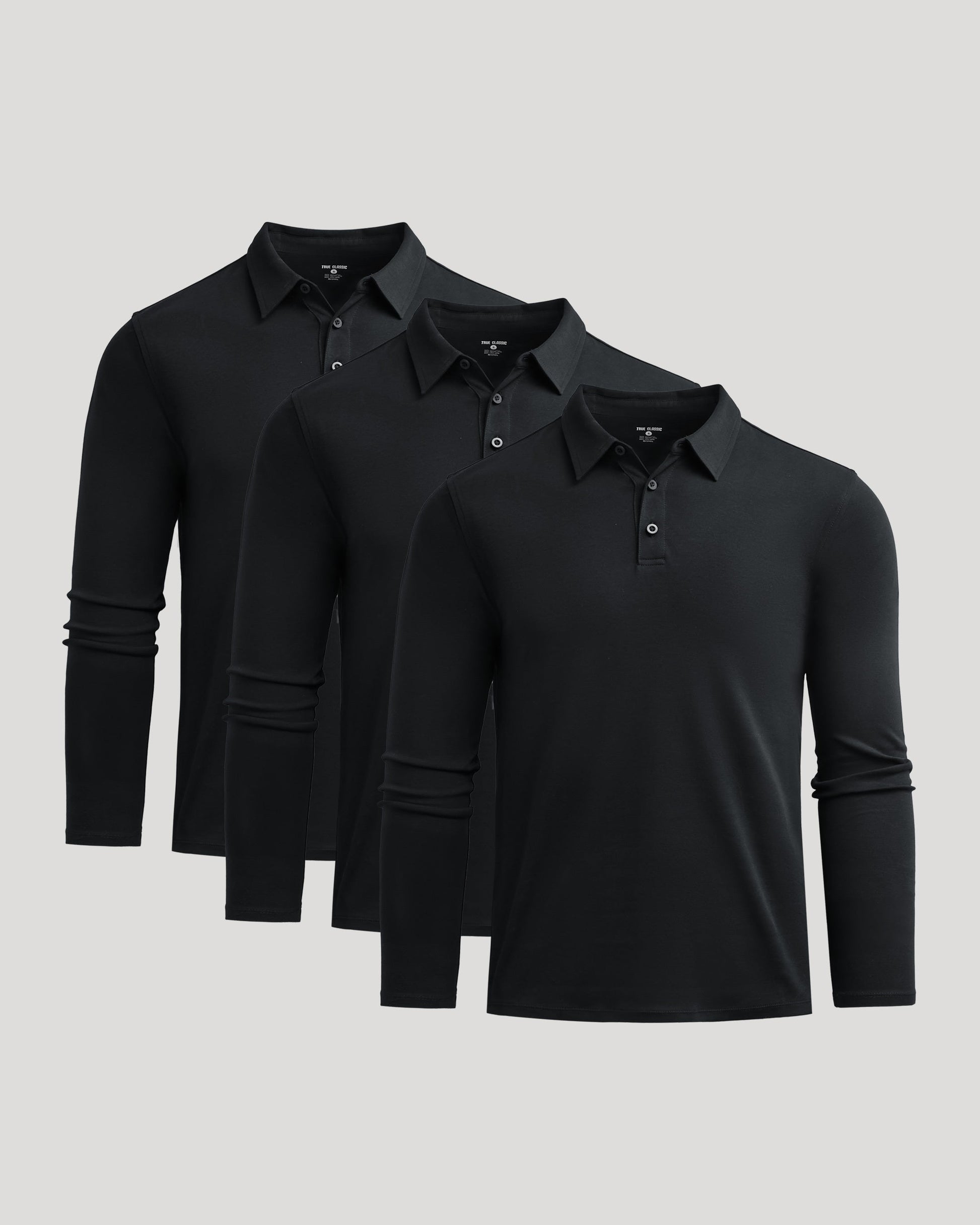 All Black Long Sleeve Premium Pima Polo 3-Pack