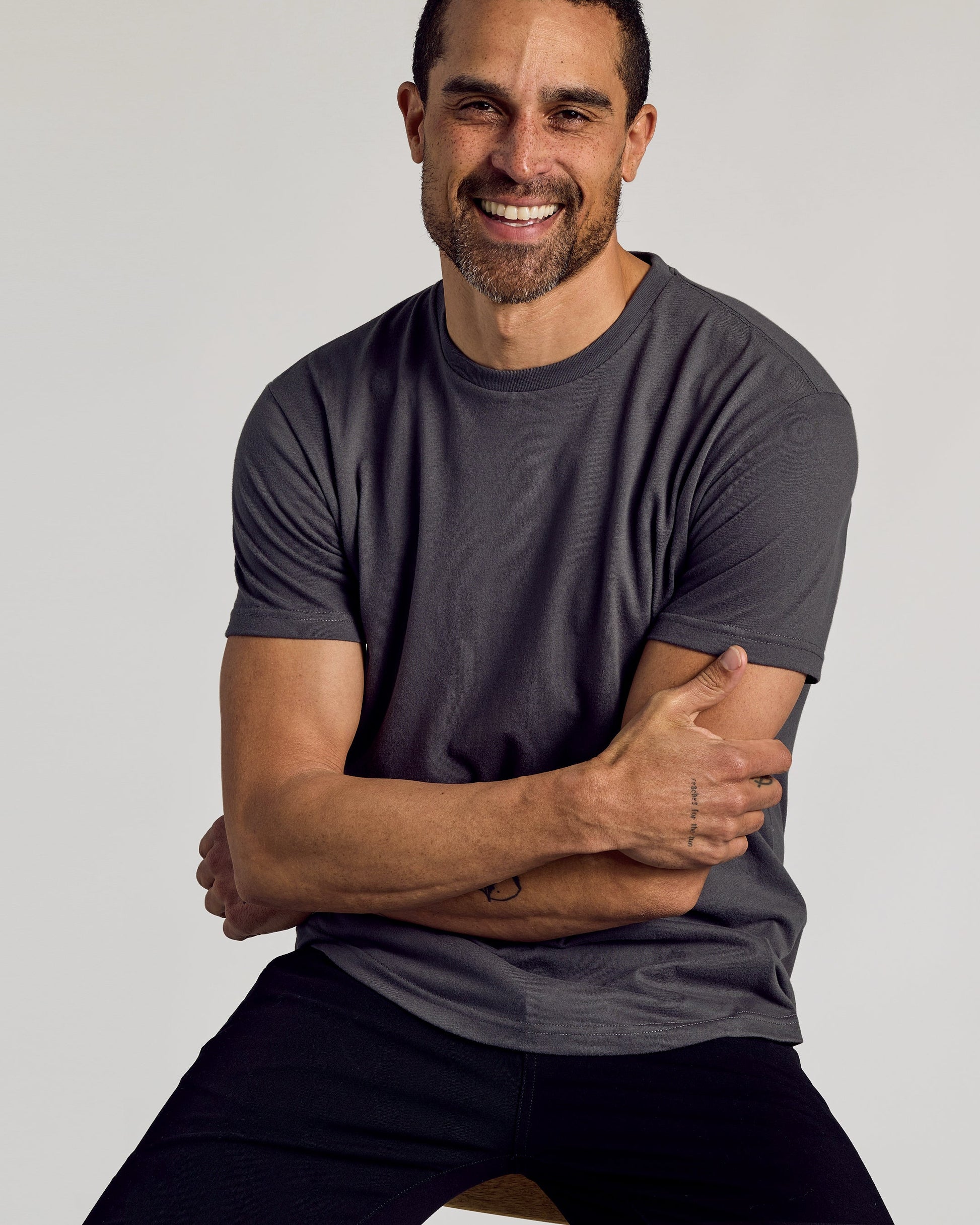 We may have cracked the code on the most versatile tee. Built with our classic bicep-hugging fit and a super soft cotton blend, this crewneck features a curved hem that feels equal parts elevated and casual. Plus, the tailored silhouette adds visual length to the torso—perfect for short kings who want to look taller, and tall kings who need a little extra coverage.