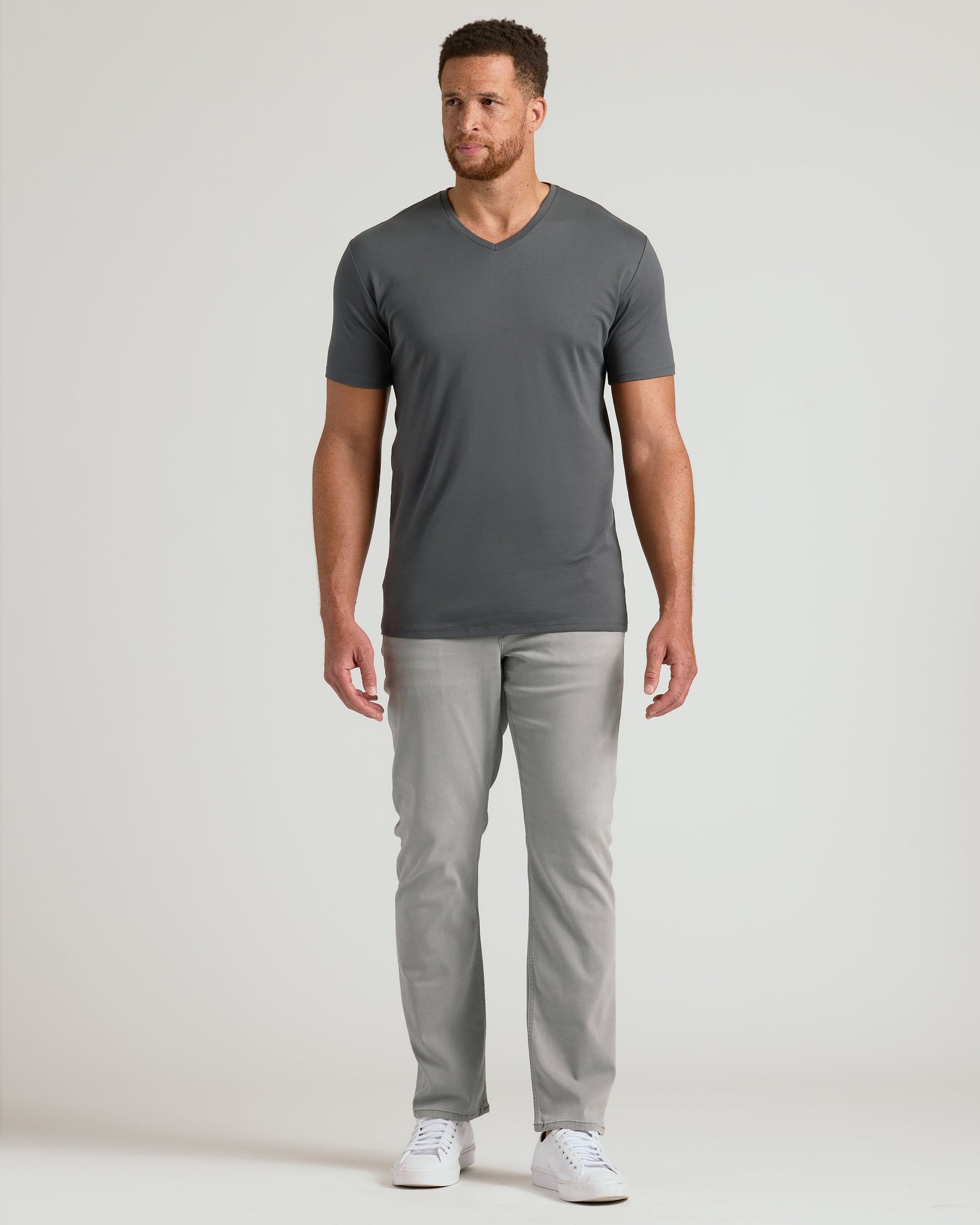 This is the V-neck for tall guys who are done settling for tees that shrink, ride up, or miss the mark. Crafted from ultra-silky 100% Pima cotton, it’s breathable, naturally durable, and cut with extra length to keep you covered. The tailored silhouette adds structure where you want it, while the deeper neckline levels up your layering game or stands strong on its own. It’s smooth, it’s durable, and we’ll bet it’ll be your new favorite.