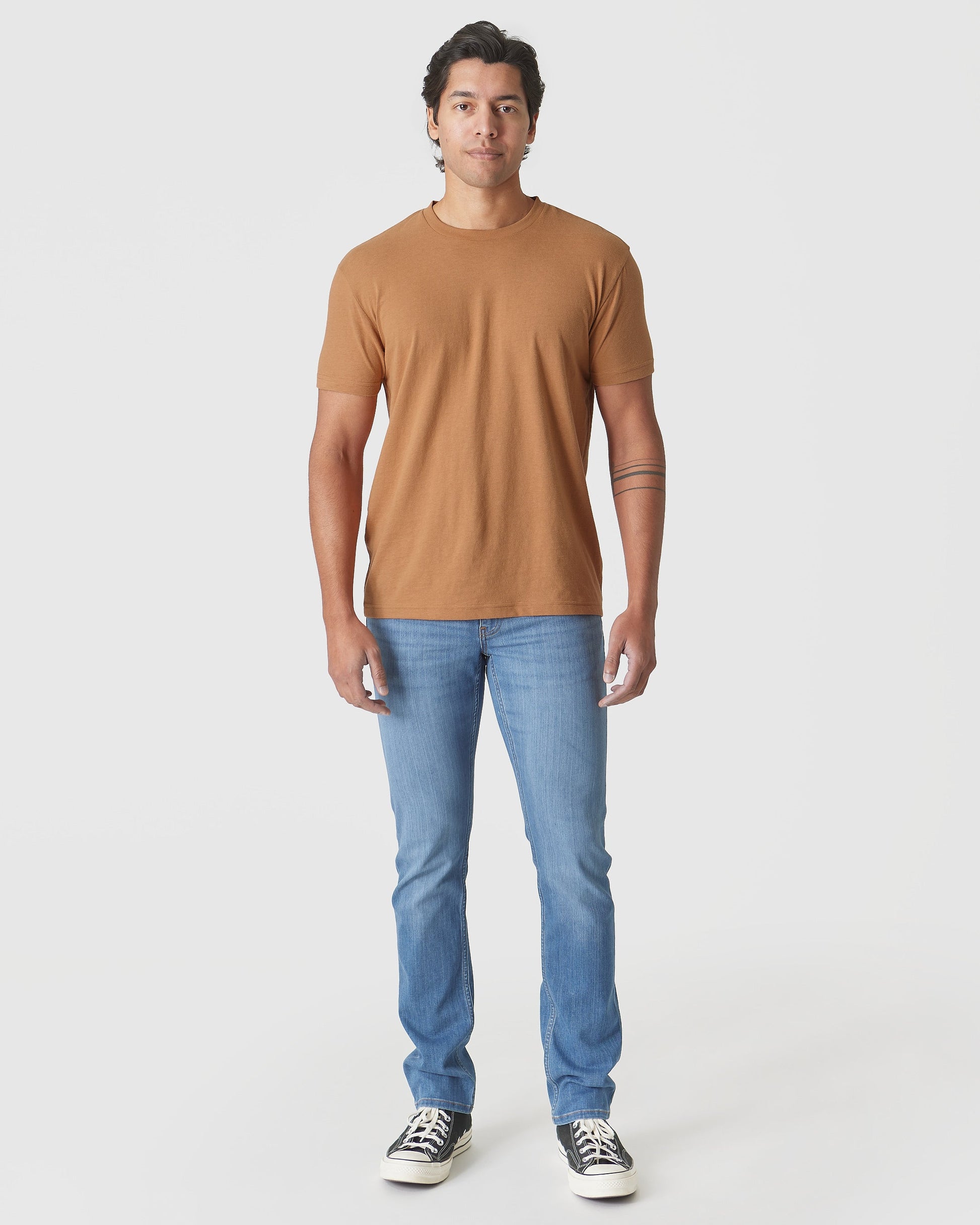 - Premium fitted crew neck t-shirt.