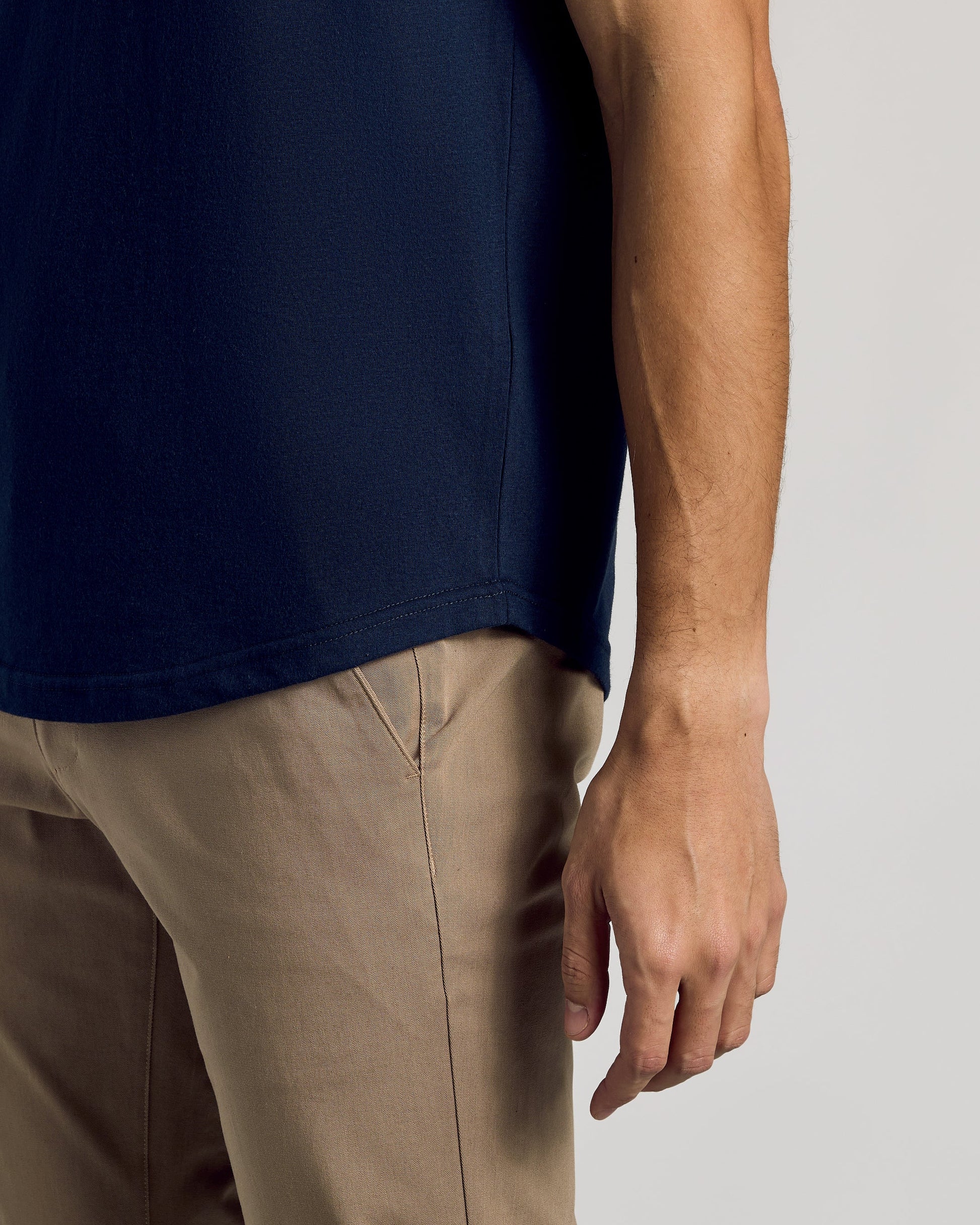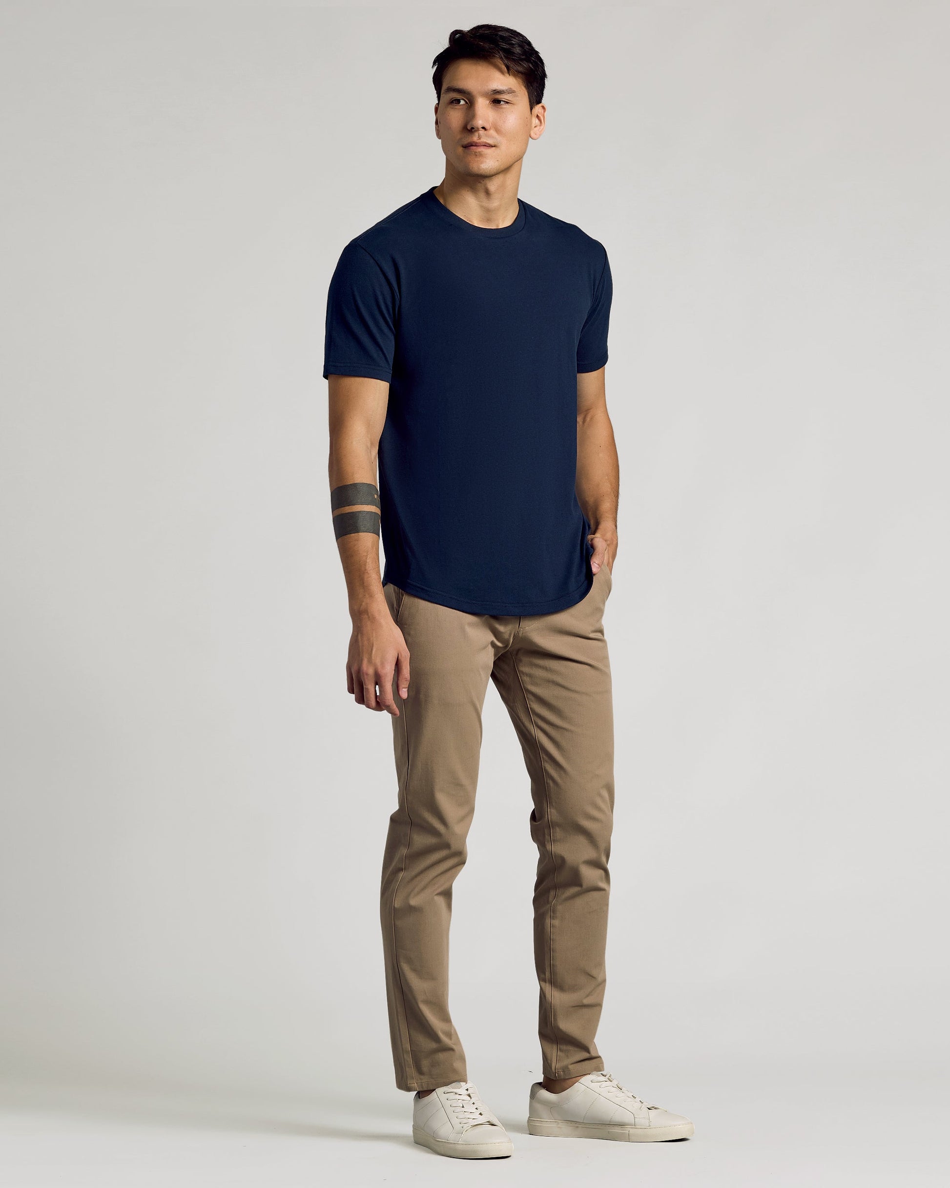 We may have cracked the code on the most versatile tee. Built with our classic bicep-hugging fit and a super soft cotton blend, this crewneck features a curved hem that feels equal parts elevated and casual. Plus, the tailored silhouette adds visual length to the torso—perfect for short kings who want to look taller, and tall kings who need a little extra coverage.