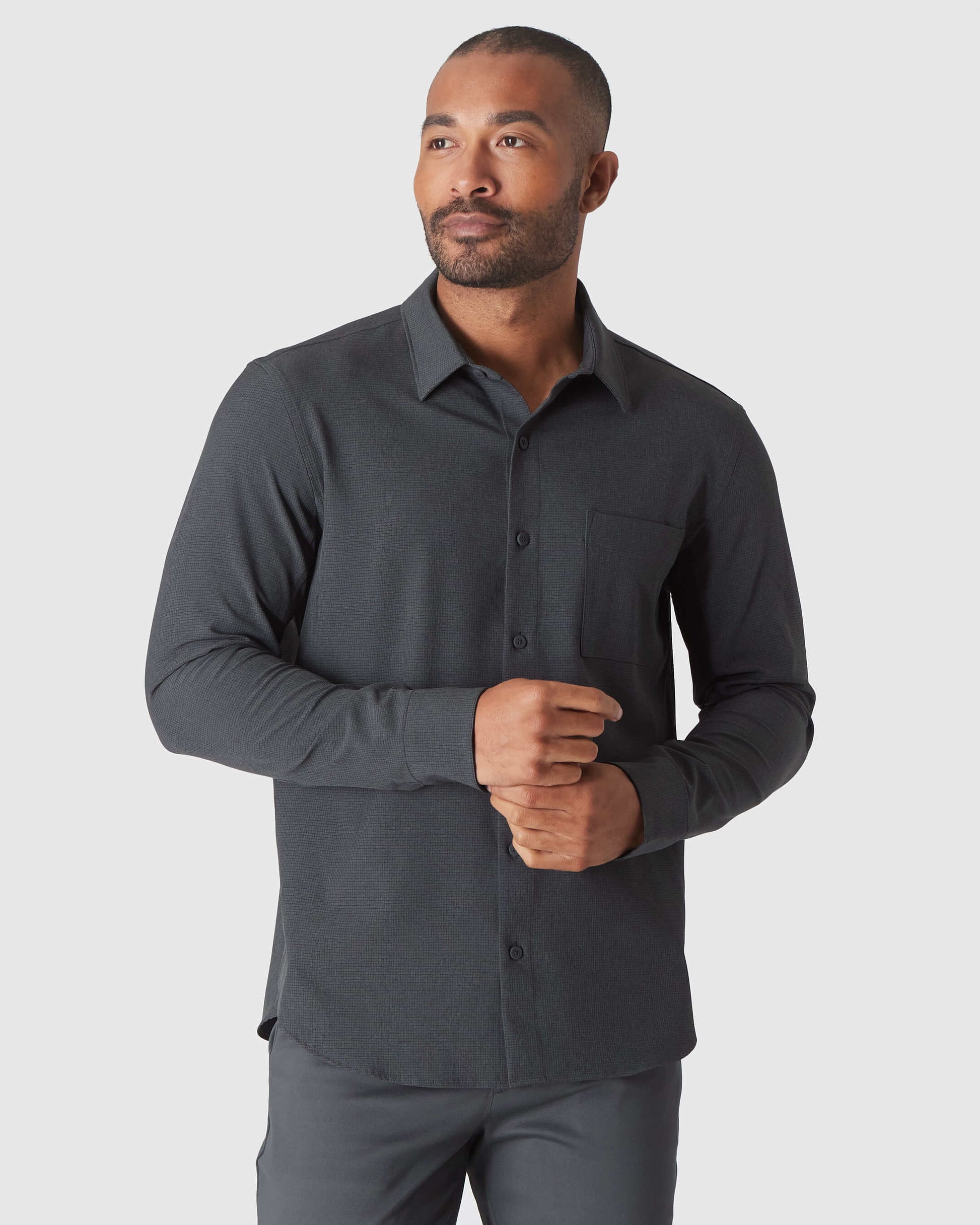 Where to, boss? This workwear staple stretches beyond the 9-5 with high performance fabric that keeps you extra comfortable. Lightweight, breathable, and flattering, it’s the business casual shirt that doesn’t bunch up or make that ruffled sound like the typical boxy button-up (IYKYK).