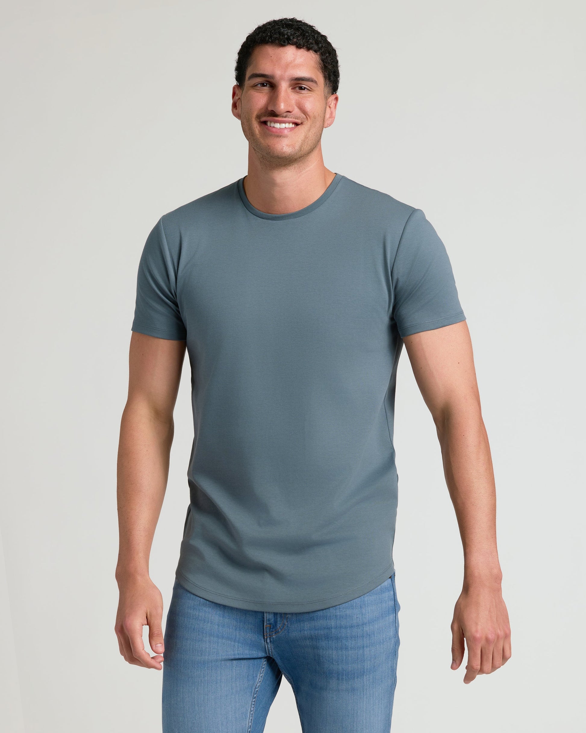 Our best-selling curved hem crewneck now comes in ultra-silky Pima cotton—and is built just for taller frames. This version of our Pima Tee adds extra length where it counts and has a modern, tailored look for a little extra polish. The premium cotton fabric is smooth, durable, and endlessly wearable—the ultimate proof that basics don’t have to be basic.